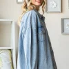 Smile Face Button Down Raw Hem Denim Jacket – Denim