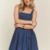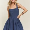 Smocked Back Square Neck Denim Dress – Denim Blue