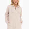 A snap-on shacket with pockets is a versatile and trendy clothing item that combines the style of a shirt and the functionality of a jacket. The snap-on design makes it easy to wear and adds a modern touch to the traditional shirt-jacket silhouette. The addition of pockets offers practicality for storing small essentials or keeping your hands warm. This shacket can be styled in various ways, whether as an extra layer over a t-shirt or as a standalone top. It can be paired with jeans, leggings, or even a dress for a chic and effortless look. The snap-on shacket with pockets is a fashionable choice for adding a layer of warmth and style to your outfit in transitional weather.