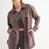 A snap-on shacket with pockets is a versatile and trendy clothing item that combines the style of a shirt and the functionality of a jacket. The snap-on design makes it easy to wear and adds a modern touch to the traditional shirt-jacket silhouette. The addition of pockets offers practicality for storing small essentials or keeping your hands warm. This shacket can be styled in various ways, whether as an extra layer over a t-shirt or as a standalone top. It can be paired with jeans, leggings, or even a dress for a chic and effortless look. The snap-on shacket with pockets is a fashionable choice for adding a layer of warmth and style to your outfit in transitional weather.