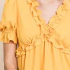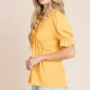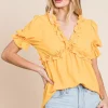 Solid Ruffled Deep V-Neck Puff Sleeve Babydoll Top – Mango