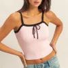 Square Neck Ribbed Knit Cami – Pink/Black