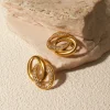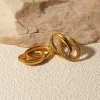 Stainless Steel Inlaid Rhinestone Double-Hoop Earrings – Gold