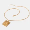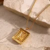 Stainless Steel Inlaid Rhinestone Rectangle Shape Pendant Necklace – Gold