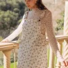 Stretch Ditsy Print Denim Overall Mini Dress – Ivory