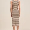Stripe Sleeveless Sweater Knit Maxi Dress With Ruffled Hem – Oatmeal/Black