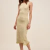 Stripe Sleeveless Sweater Knit Maxi Dress With Ruffled Hem – Sage/Off White