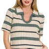 Striped Collared Short Sleeve Cropped Sweater – Ash Jade