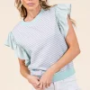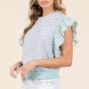 Striped Contrast Ruffle Detail Sleeveless Top – Mint
