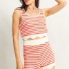 Striped Cropped Tank and Shorts Set – Coral/Cream