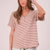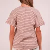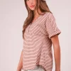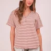 Striped V-Neck Short Sleeve T-Shirt – Red