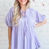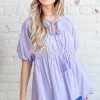 Textured Pintuck Blouse Top with Tassels – Lavender