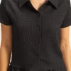 Textured Short Sleeve Top and Drawstring Shorts Knit Set – Black