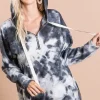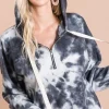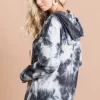 Tie Dye Brushed Terry Hoodie with Zip Up Closure – Ivory/Black