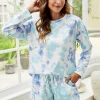 Tie-Dye Dropped Shoulder Top and Shorts Lounge Set – Light Blue