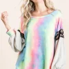 Tie Dye Terry Top with Contrast Puff Sleeves – Pastel Tie Dye