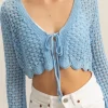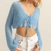 Tied Front Crochet Cropped Cardigan – Pastel Blue