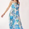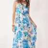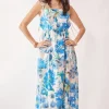 Tropical Boho Printed Detail Cut Out Maxi Dress – Cobalt Blue