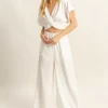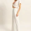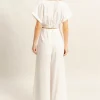 Twisted Front Short Sleeve Top and Wide Leg Pants Set – Off White