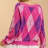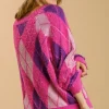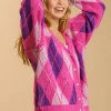 Umgee Full Size Argyle Pattern V-Neck Button Front Cardigan Plus Size – Hot Pink