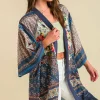 Umgee Full Size Fringe Hem Open Front Printed Kimono Sleeve Cover-Up Plus Size – Teal Mix