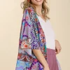 Umgee Full Size Mixed Print Ruffle Hem Open Front Cover Up Plus Size – Turquoise