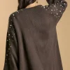 Umgee Full Size Open Front Cardigan with Long Sleeve Pearl Details Plus Size – Charcoal