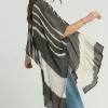 This cover-up features a tie-dye print on the back, adding a vibrant and eye-catching element to the overall design. The open front design allows for easy layering over different outfits, making it perfect for adding a bohemian touch to your look. The kimono sleeves are loose and flowy, providing a relaxed and comfortable fit.