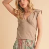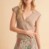 V-Neck Cap Sleeve Cropped Top – Mocha