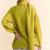V-Neck Dropped Shoulder Sweater with Scarf – Chartreuse