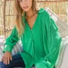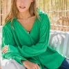 The V-neck pleated long sleeves shirt is a classic and versatile piece for your wardrobe. The V-neckline adds a flattering touch to the shirt, while the pleated detailing offers texture and interest. The long sleeves make it perfect for layering or wearing on its own, making it a stylish and practical choice for both casual and dressier outfits.