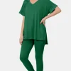 V-Neck Rolled Short Sleeve T-Shirt and Leggings Lounge Set – Dk Green