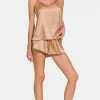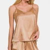 V-Neck Satin Cami and Elastic Waist Shorts Lounge Set – Brush