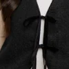 The V-Neck Tie Detail Vest Coat is a stylish and versatile outerwear piece that combines a v-neckline with tie detailing for a modern and chic look. The v-neck design adds a touch of sophistication to the coat, while the tie detail offers a customizable and flattering fit. This vest coat is perfect for layering over tops or dresses for added warmth and style. The versatile design allows for easy dressing up or down, making it a practical choice for various occasions. Whether worn open or tied, the V-Neck Tie Detail Vest Coat is a trendy and fashionable addition to your wardrobe.