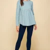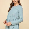 Waffle Knit Babydoll Top with Left Pocket Detail – Sea Blue