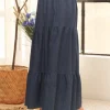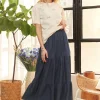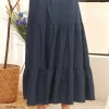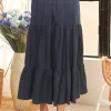 Waist Band Tiered Denim Maxi Skirt – Dk Denim