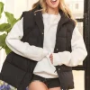 Waist Drawstring Detail Puffy Hoodie Vest – Black