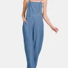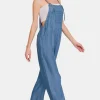 Washed Adjustable Strap Wide Leg Denim Overalls – Dusty Blue