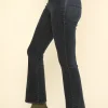 Washed Denim Stretchy Crossover Waist Leggings – Black