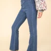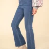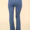 The Washed Denim Stretchy Crossover Waist Leggings offer a trendy twist on classic denim. The crossover waist design adds a stylish and flattering silhouette, while the stretchy fabric ensures a comfortable, form-fitting feel. The fitted top transitions into a flared leg, creating a balanced and fashionable look. Ideal for a casual day out or a relaxed evening, these leggings combine the comfort of leggings with the timeless appeal of denim. Their versatility makes them a staple piece for any wardrobe.