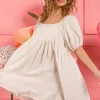 Washed Linen Tiered Midi Dress with Puff Sleeves – Natural