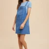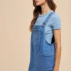 Wide Strap Denim Overall Dress With Pockets – Indigo Washed Denim