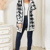 Crafted in a classic houndstooth pattern, this open-front longline cardigan exudes elegance and versatility. Its relaxed fit and beautiful silhouette make it the perfect layering piece. Whether paired with jeans for a casual look or dressed up with a dress, this cardigan is a must-have addition to your wardrobe.